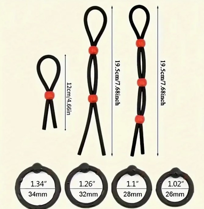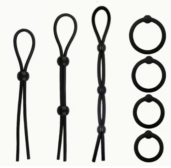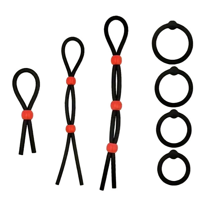 EwToys- szilikon, fekete-piros állítható 3 db. pénisz-heregyűrű + 4 db eltérő méretű péniszgyűrű szett