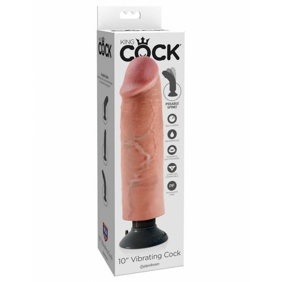 King Cock 10 inch Vibrating Cock Flesh - Testszínű, tapadókorongos élethű vibrátor