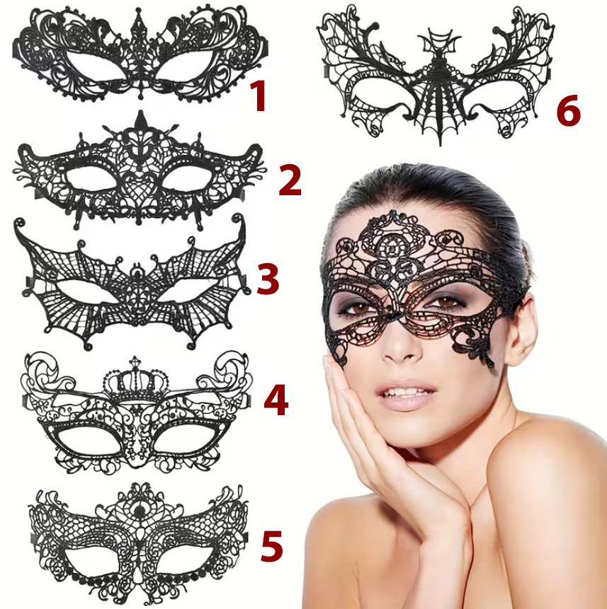 EwToys fekete csipkés szemmaszk – 6 féle választható elegáns álarc különleges alkalmakra